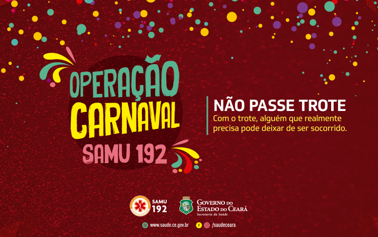 Nos municípios que terão festas durante a folia, a cobertura será reforçada. E como alerta para assegurar a eficiência do atendimento nesse período carnavalesco, o diretor do SAMU 192 Ceará, Cel. João Vasconcelos, alerta sobre os trotes. “No atendimento de um trote, um atendimento real pode deixar de ser feito, podendo até ocorrer óbito devido à demora da ambulância”, ressalta.